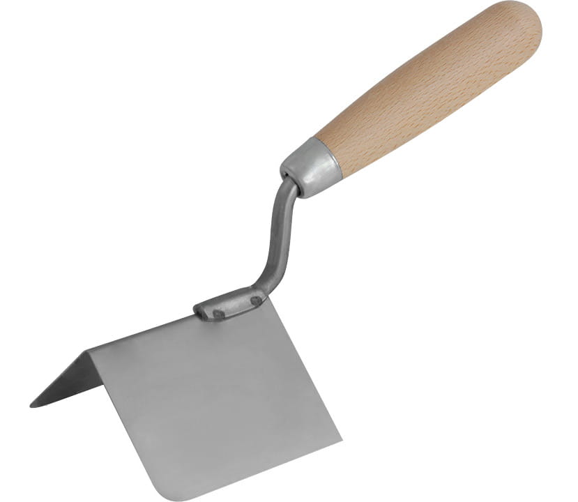 Kielnia kątowa o zagiętym blacie przeznaczona jest do wykańczania kątów (odpowiednio wewnętrznych lub zewnętrznych). w czasie "prac mokrych", czyli tynkowania i gipsowania ścian.