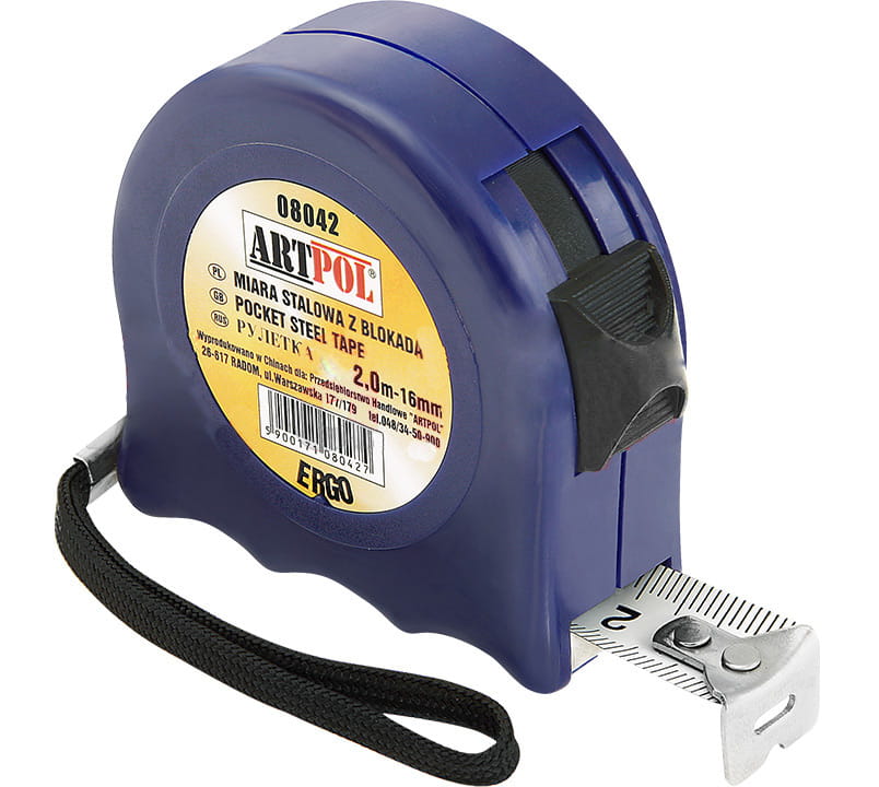 Zwijana miarka stalowa 2 m z blokadą, smyczą.