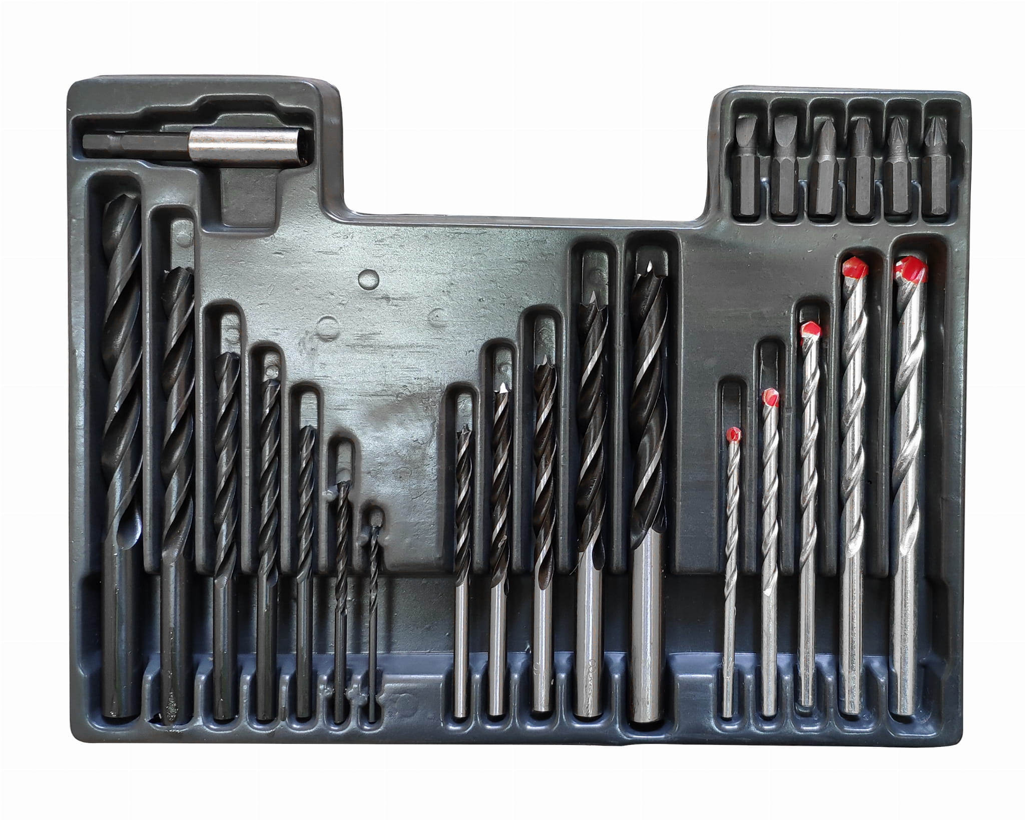 Komplet pozwala na wykonanie w domowych warunkach większości podstawowych prac związany wierceniem, przykręcaniem, śrub i wkrętów itp.
