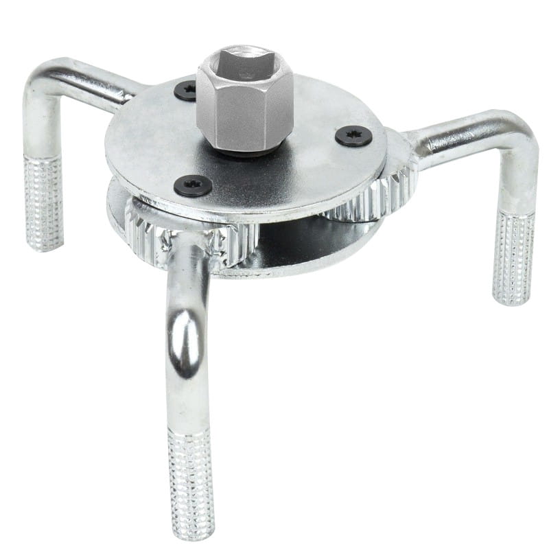 Klucz do odkręcania filtrów olejowych. Wykonany z wysokiej jakości stali, z trzema ruchomymi ramionami. Jako pokrętła należy użyć grzechotki lub pokrętła z kwadratem 3/8".