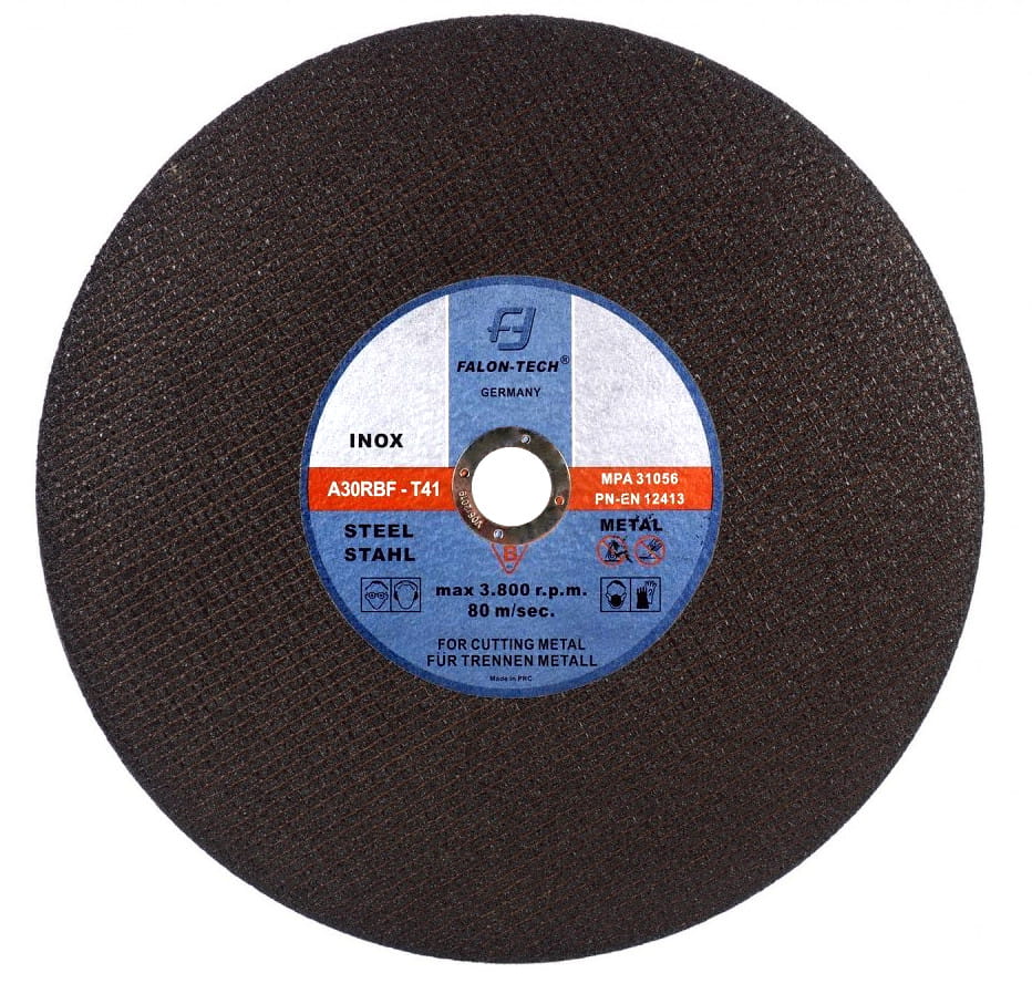 Tarcza tnąca do metalu. Ścierniwo wiązane żywicą syntetyczną i wzmacniane tkaniną z włókna szklanego. Wyjątkowo wytrzymałe ziarna ścierne z tlenku glinu odpowiadają za wysoką wydajność cięcia materiału i zapewniają przedłużoną żywotność narzędzia.