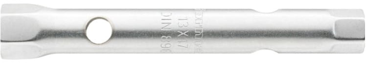 Klucze rurkowe 19x22mm wykonane zgodnie z DIN 896, ISO 2236, kształt B. Wyprodukowane na bazie bezszwowej, ciągnionej, precyzyjnej rury stalowej, chromowanej, posiadają otwór na trzpienie obrotowe.