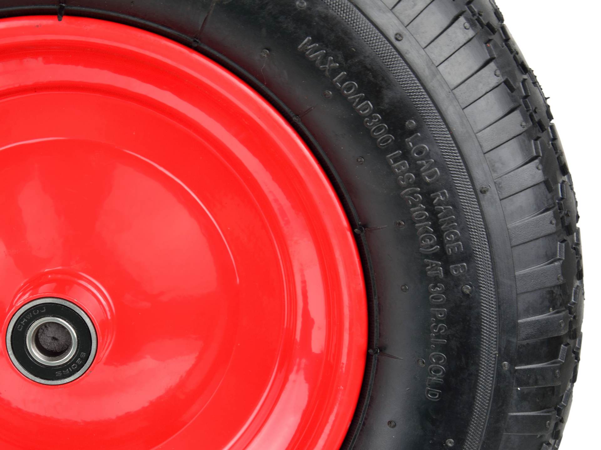 Koło do taczki o maksymalnym obciążeniu do 210 kg . Wytrzymała metalowa felga malowana proszkowo zapewnia podwyższoną stabilność. Całość wykonana z wysokiej jakości materiałów.
