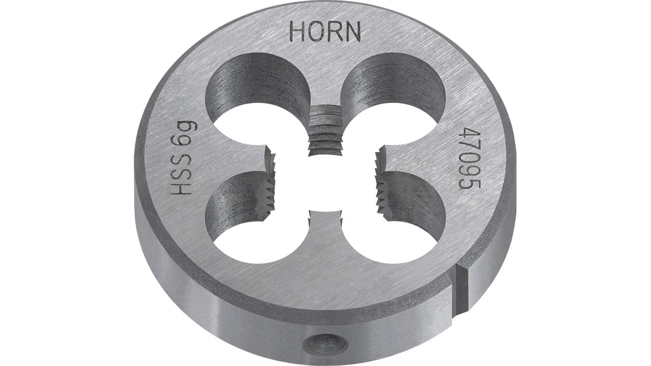 Narzynka okrągła do gwintu metrycznego zwykłego prawoskrętnego wg. ISO DIN-13, w klasie podstawowej do najczęściej stosowanych tolerancji gwintu zewnętrznego wg. ISO (6g)