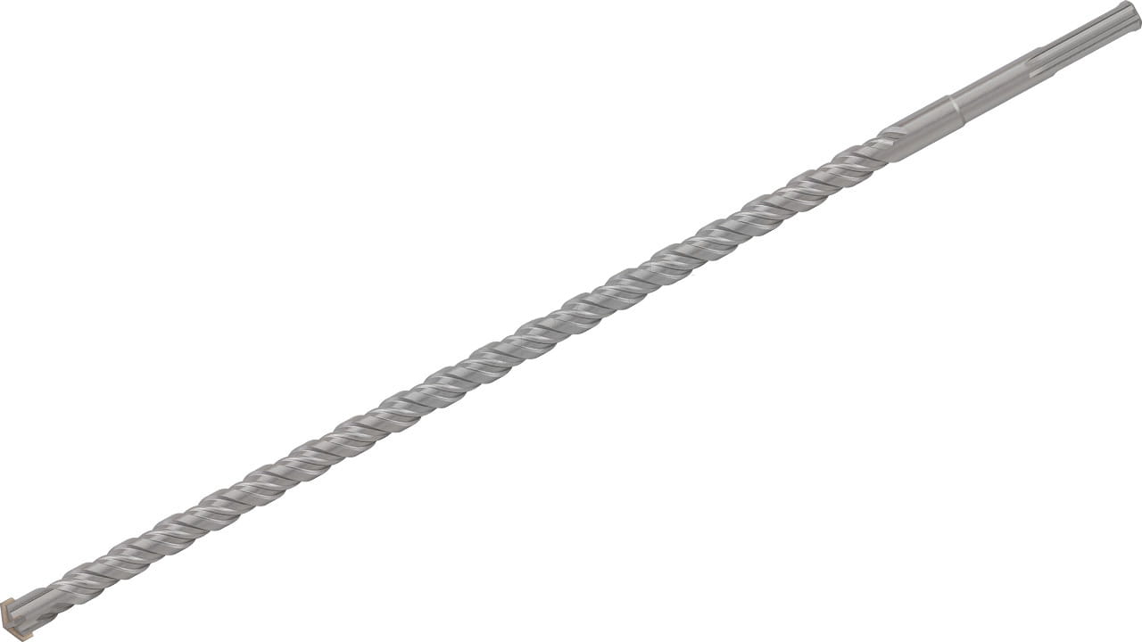 Specjalny kształt 4-ostrzowego wlutowanego węglika wolframu zapewnia szybkie i centryczne wiercenie. Uchwyt SDS-max z opatentowaną wielokanałową spiralą KVS o symetrycznym kształcie na całej długości, gwarantuje stabilne i dynamiczne charakterystyki w czasie wiercenia (zmniejszenie poziomu drgań), co znacznie zwiększa wydajność wiercenia wskutek szybkiego odprowadzania urobku z otworu oraz wydłuża okres użytkowania wiertła.