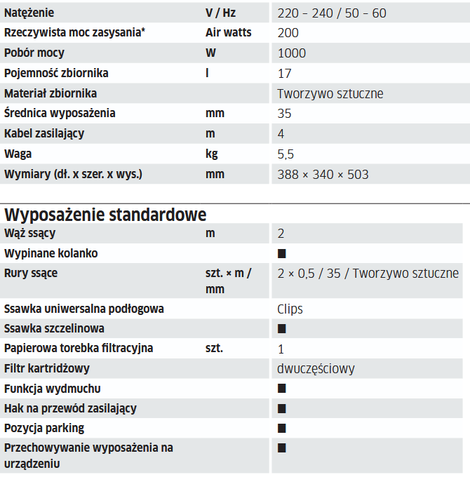 Praca na sucho i na mokro bez potrzeby wymiany filtra.