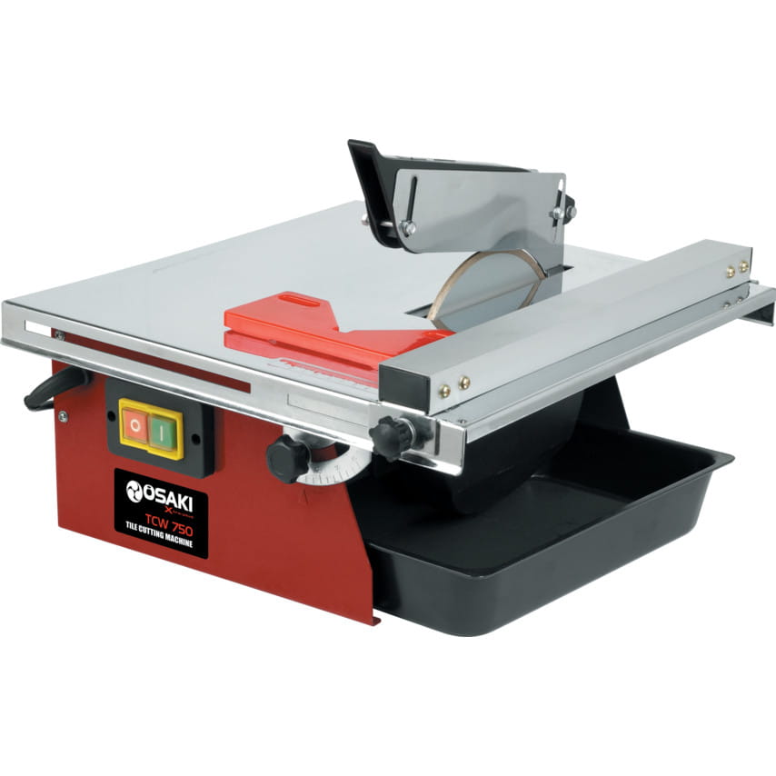 OSAKI TCW750 to przecinarka do glazury wyposażona w tarczę z diamentowym pierścieniem o średnicy 180 mm i mocny silnik 240 V do szybkiego i dokładnego cięcia ceramicznych płytek ściennych i podłogowych. Narzędzie zostało wyposażone w zbiornik wody umieszczony pod stołem do cięcia, który zapewnia smarowanie noża i zmniejsza poziom kurzu, co zapewnia wydajne cięcie i dłuższą żywotność urządzenia. Blokowany stół przechylny do cięcia ukośnego - regulowany od 0 do 45.