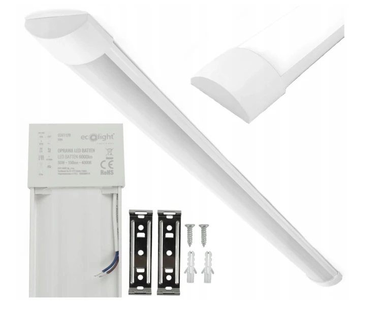 Panel LED typu slim o długości 150 cm, przeznaczony do montażu natynkowego (na sufit lub ścianę). Jest to nowoczesny zamiennik klasycznych świetlówek – energooszczędny, cienki i gotowy do montażu (z wbudowanym źródłem światła).