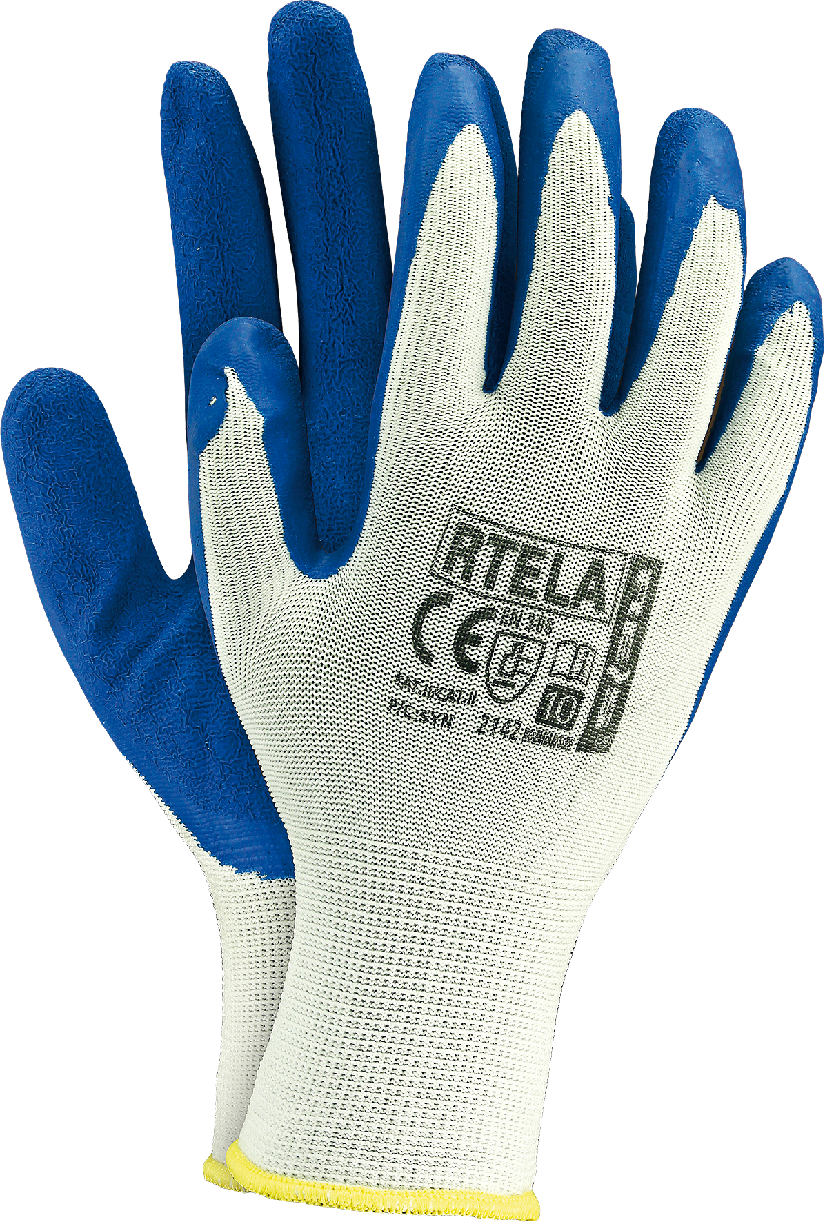 Rękawice ochronne wykonane z poliestru, powlekane latexem RTELA.