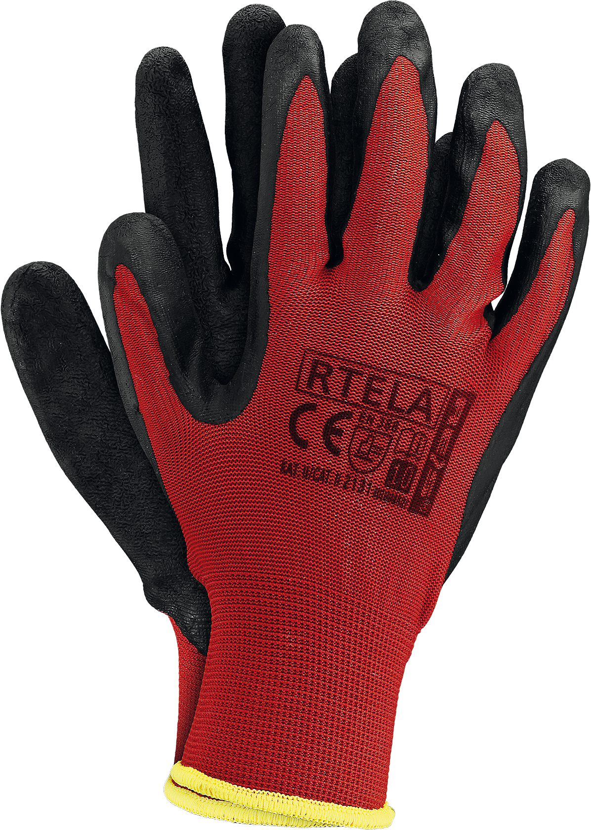 Rękawice ochronne wykonane z poliestru, powlekane latexem.