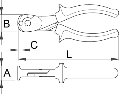 - Rękojeść wykonana z dwu-komponentowego materiału ogranicza możliwość poślizgu ręki i umożliwia bezpieczne i efektywne przeniesienie energii z ręki na szczęki szcypiec.