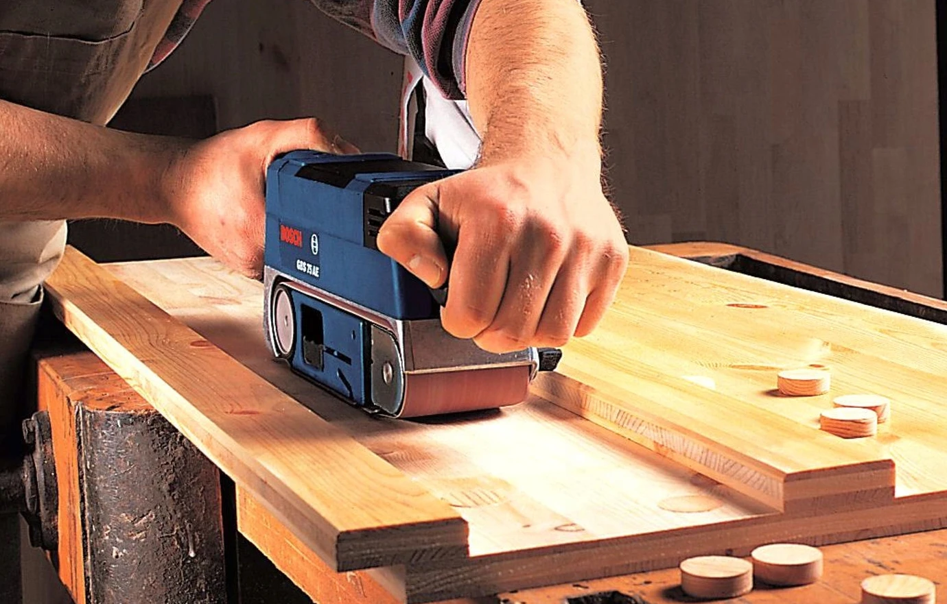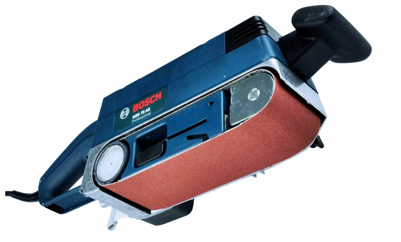 - Bosch GBS 75 AE Set to wytrzymała szlifierka taśmowa, bardzo poręczna przy usuwaniu, szlifowaniu i czyszczeniu powierzchni z drewna, tworzyw sztucznych oraz metalu.