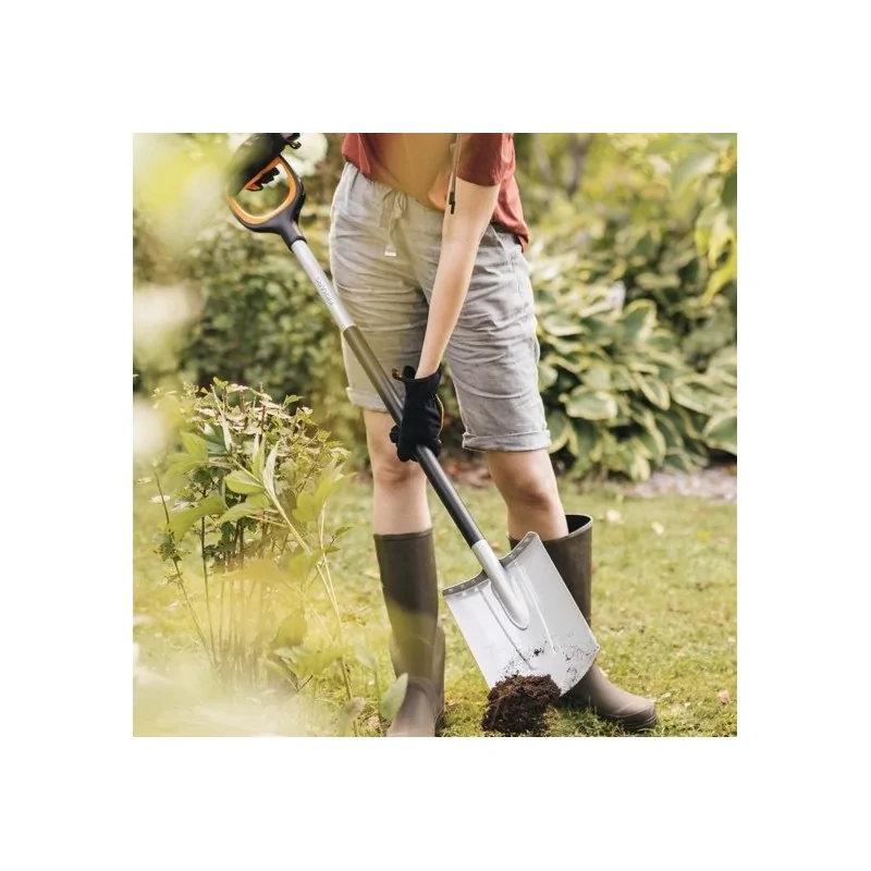 Wyposażony w antypoślizgową podporę, szpadel Xact zapewnia stabilność i pewny chwyt podczas pracy. Jego zaostrzona krawędź i boki głowicy umożliwiają łatwe przecinanie gleby, co sprawia, że nawet najtrudniejsze zadania stają się szybkie i efektywne.