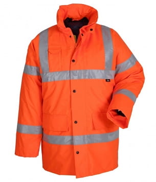 Kurtka z grubą podszewką przeciwdeszczowa ostrzegawcza o intensywnej widzialności powlekana poliuretanem.