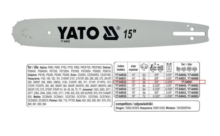 YATO PROWADNICA ŁAŃCUCHA DO PILAREK 15" 3/8"V