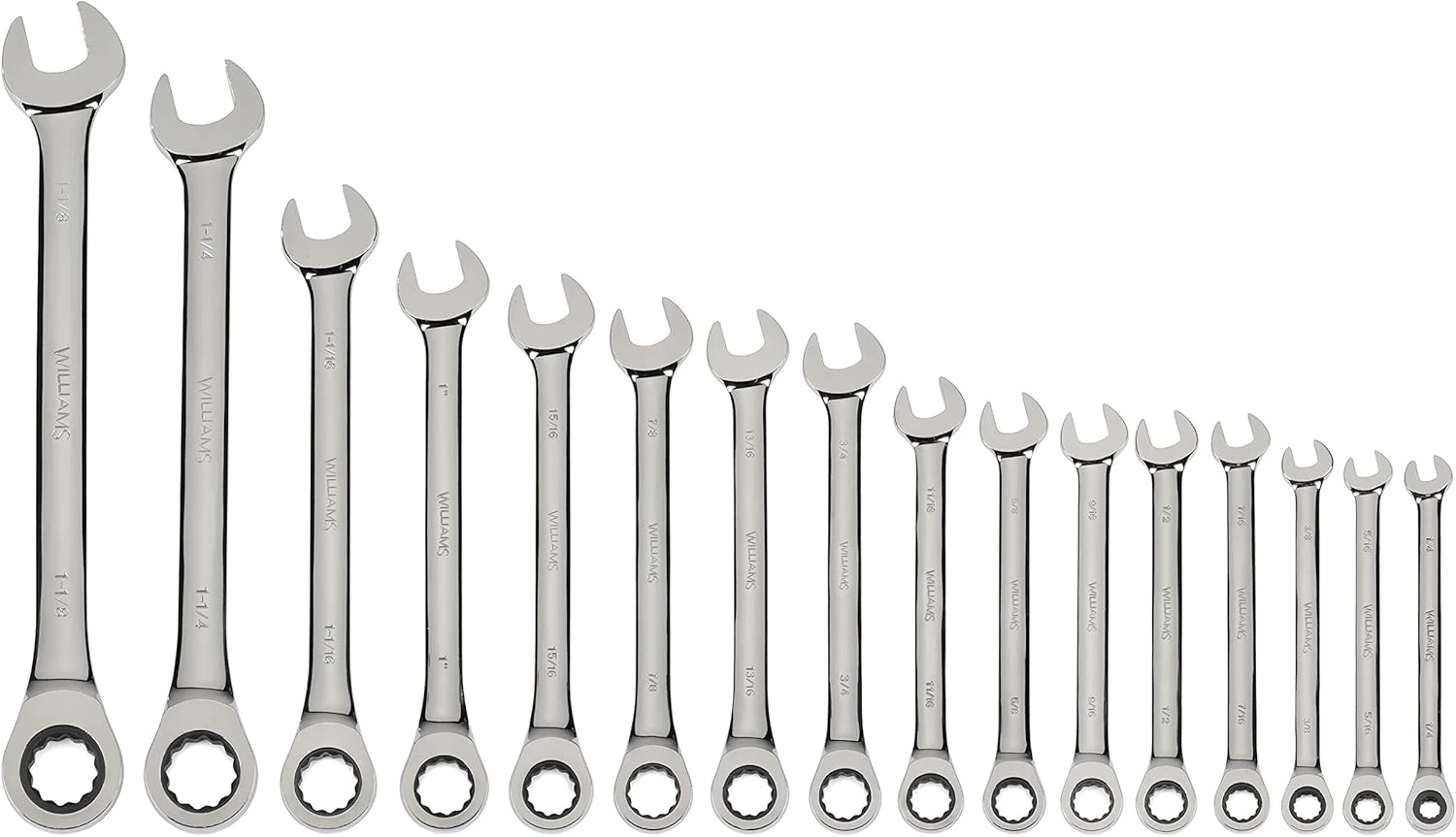 Williams WS-1122NRC – zestaw kluczy płasko-oczkowych z grzechotką (16 szt.)